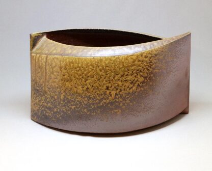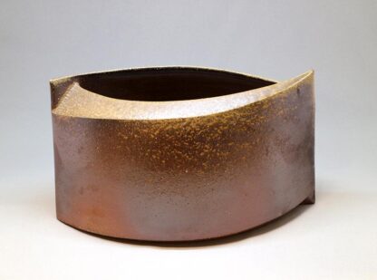 板を貼り合わせたような形状の面取の花器で,窯変の焼けがバランス良く現れていて作家らしい雰囲気を漂わせている一点です。