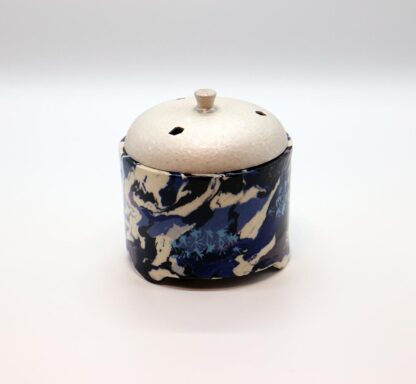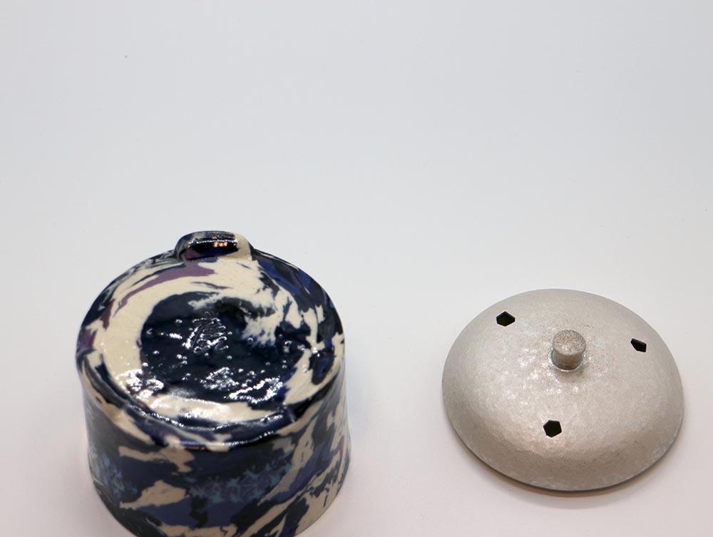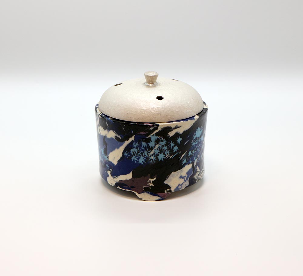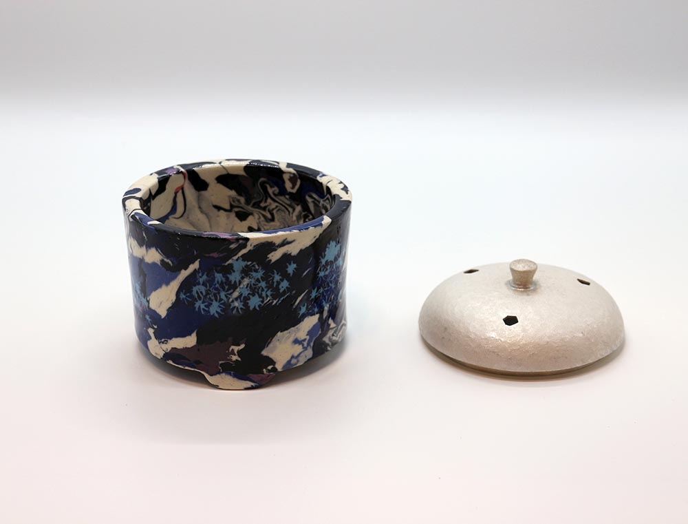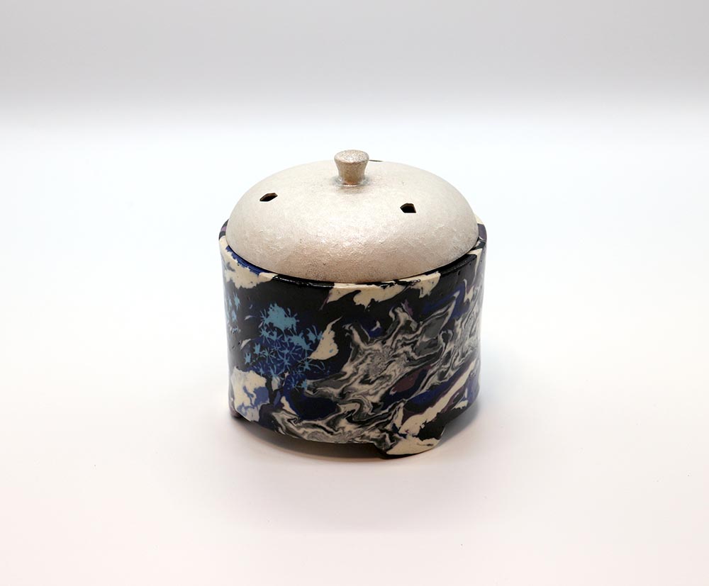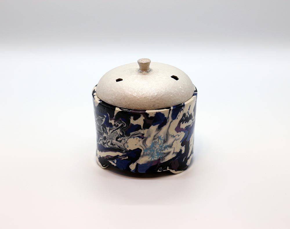 質の違う土を練り合わせて模様を作り出す,練上の技術を極め人間国宝に認定された松井康成の香炉です。
